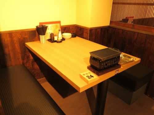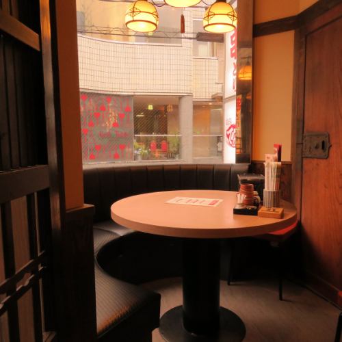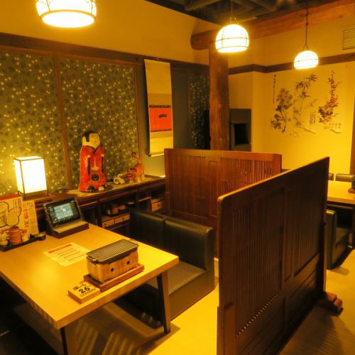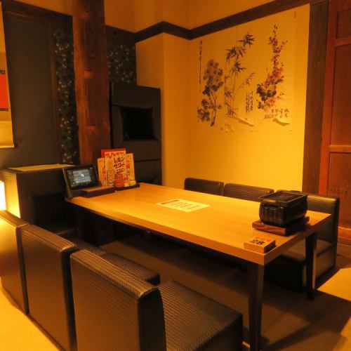 落ち着いた雰囲気でゆったりと寛げる席。最大4名様まで可能なので、デートや接待、女子会など様々なシーンでご利用いただけます。人目を気にすることなく飲んで食べて喋ってと、ぜひ、楽しい時間を過ごしください!※写真は高松店です。
